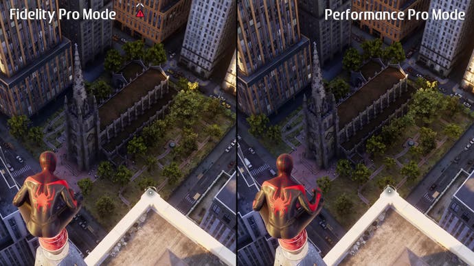 For starters, Insomniac's excellent temporal injection has been replaced with PSSR. The internal resolution metrics are comparable, eg with performance mode at ~1440p internally, but PSSR allows much more detail to be resolved. That also applies in the fidelity mode, which has a near-4K internal resolution and a much sharper and more stable image with PSSR onboard. However, those sitting closer to larger TVs will notice the difference more readily than those with smaller TVs and higher average viewing distances.