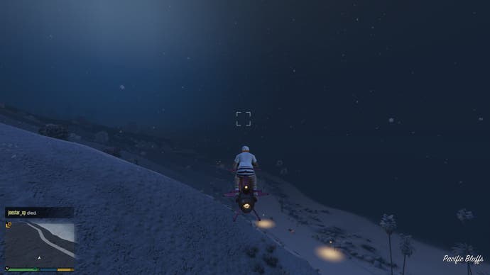 But that thought: what a weird game this has become. Over the years, GTA Online has moved from being something terrifying and intimidating into something that feels a bit like Animal Crossing. If you time it right and if you end up with the right people, you're not getting headshotted or blown out of the sky. Instead, you're going for a cheery wander in a landscape you've come to know well, come to feel like you have some kind of stake or ownership in it. We drop into GTA Online these days not to do anything specific - generally not to do anything at all. We head in for the same reason I sometimes wander into the garden. Just to hover in a middle-aged way and look around.