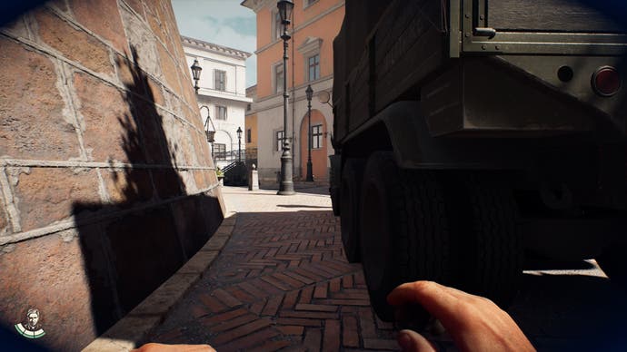 It feels realistic, but not to the point that it becomes frustrating and unenjoyable. I once managed to get myself stuck behind a crate with no clear exit path, for example, and enemies were patrolling up and down (one had a dog which upped the ante), and I felt myself going, "Well… this isn't good". But after a moment, I realised I had multiple chances to use stealth to my advantage - this time I chose to create a diversion by grabbing a nearby wrench and tossing it across the courtyard to get the enemy's attention. Then, while their backs were turned, I dashed across the way and dove through an open window… only to then find myself behind yet another guard. Luckily, I kept myself out of their eyeline and snuck into the next room. "Phew," I thought. "I was safe!" And I liked that it didn't punish me for thinking on my feet.
