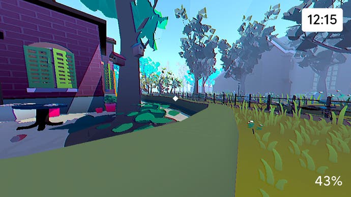 Early on you can bash a hole through a wooden fence to access a back room in the garden. It's an action I'm sure every professional gardener performs on a regular basis, but unlike the lush, overgrown area behind me, this rear little patch of land felt rather unwanted. Sure, the scattered collection of flower pots and bushes proved someone had been trying to cultivate life here, but there was also a car. A car which physically couldn't enter this area. Its presence grew even stranger when I found a hammer decorated with suspiciously red strains inside its boot.