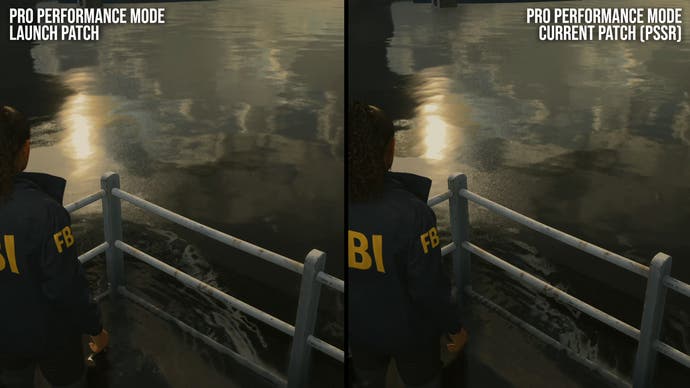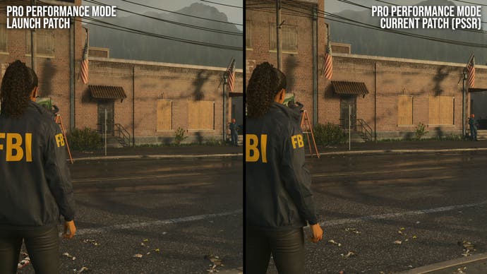 The biggest change though comes with the additional of a PSSR toggle, which is becoming something of a trend for PS5 Pro patched titles. PSSR's upscaling tended to be a bit better in motion but suffered from some additional break-up and appeared less sharp in still shots, so you're now able to use FSR2 upscaling instead if you wish. Alan Wake 2 was far from the worst-looking game with PSSR enabled, but the relatively low internal resolution (864p) being upscaled to 4K does make your choice of upscaler important.