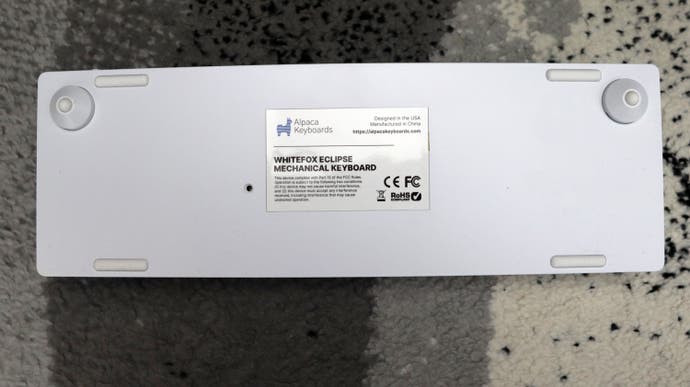 My sample is the plastic case version, although you can also get it with an aluminium case, much like the Massdrop version. It's reasonably sturdy, although comes with some flex under pressure. By default, the WhiteFox Eclipse is a tall and flat keyboard with the case being quite thick and with it coming with full-size switches. This means it can be quite difficult to use without it being raised up to a more comfortable angle. To this end, I'm especially grateful for the magnetic feet that are provided in the box.