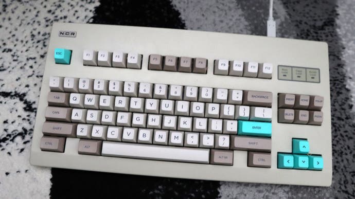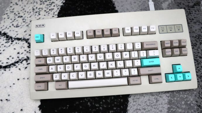 The very kind folks at MechBoards UK sent this over, and specced it out with some TTC Golden Blues. I felt like it had to be something clicky because it leans into the romanticised era of loud keyboards that the G80-3000 was born into back in 1988. These are 37g tactile switches with a total travel of 3.5mm, making them lighter and snappier than your standard MX Blues. I found them quite comfortable to use for writing up all sorts of content, and being a lighter switch, you could conceivably use them for gaming, if you're a madman. Nonetheless, the Golden Blues in here fitted well with the feel of the NCR-80, as do the lovely beige keycaps provided, which round off the look wonderfully.
