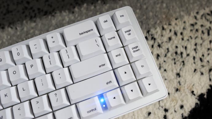 The similarities between the old WhiteFox from Massdrop and the new Eclipse model here are mostly cosmetic, with the same clean white finish, a similar 'TrueFox' 68 percent layout with a nav cluster and arrow keys on the right hand side, and the same Cherry profile dye-sub PBT keycaps. It results in a keyboard that looks gorgeous and wonderfully modern.