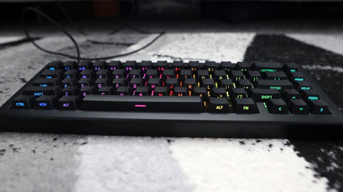 There isn't any additional software here, with customisation limited to changing the RGB lighting mode through a series of keyboard shortcuts. There are a range to choose from, with most of them displaying colours of the rainbow in a slightly different patterns, although some only do this in red and white, or a different shade of blue. You can use Fn and M to change the pattern, and Fn and K to cycle through different colours for the pattern. There is single colour backlighting contained within these settings, although isn't as easy to access as with actual software.