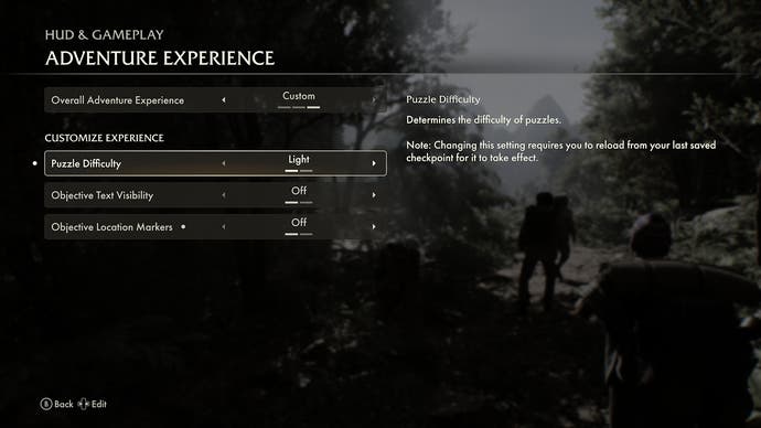 There is also the option to customise Indiana Jones and the Great Circle's 'Adventure experience', which means tweaking puzzle difficulty and location markers.