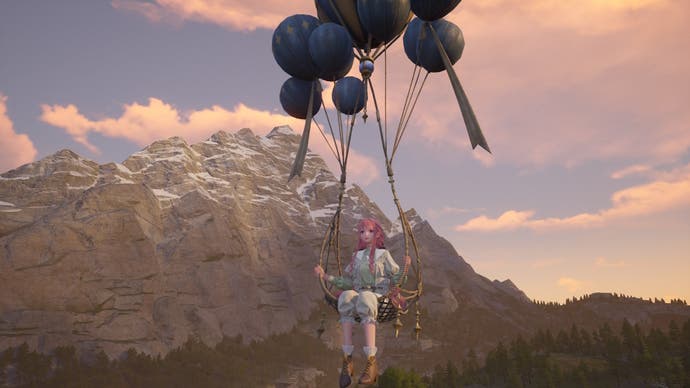 Initially, my first few hours in Miraland weren't particularly remarkable. There are the usual chests that reward in-game currency; resources such as flowers, bugs, and fish to collect for outfit crafting; puzzles and minigames; side quests; and hundreds of Korok Seed-like collectibles called Whimstars to discover and challenge. However, as I made my way through the six mini-regions available at launch, I started to notice all the extra touches that have been added for seemingly no other reason than to make your journey as upbeat and memorable as possible. For example, there are hot air balloon rides that are perfect for soaking in the fairytale sights; bubble blowers to annoy NPCs with; magical hopscotch that changes Nikki's clothes with every skip; and a 'Whimcycle' bike used to pedal across rolling hills and hop to impossible heights with.