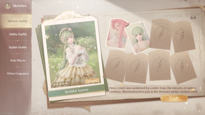 These technical issues are one of the only things getting in the way of fully enjoying my jaunts about Miraland, though we do also have Infinity Nikki'sother, seemingly inescapable issue to deal with as well here: the gacha of it all. As Infinity Nikki is a dress-up game at heart, the Banners you spend your in-game currency on don't feature new characters. Instead, they offer exclusive outfits. While there are lots of ways to get outfits and clothing pieces for free just by exploring and completing quests, Banner outfits can't be earned through any other method - you have to spend in-game currency on them. This currency can be accrued slowly by completing tasks in the game for free, or you can buy premium packs and convert them into what you need to pull on Banners. These exclusive costumes do tend to look more desirable than the free ones, but not by much - or at least not that I feel like I need to spend ridiculous sums of money to get them.