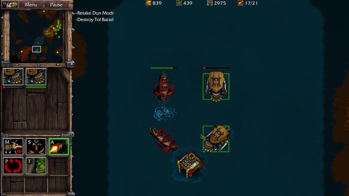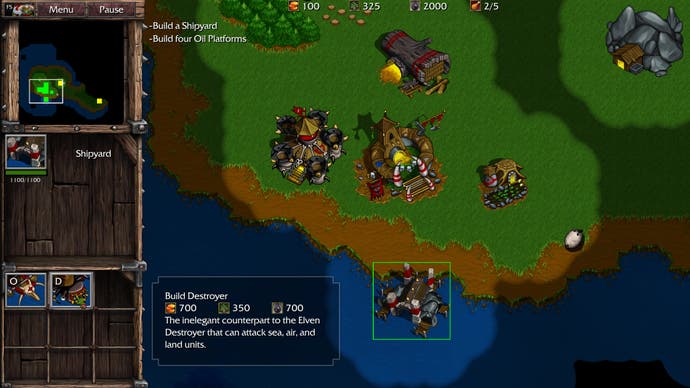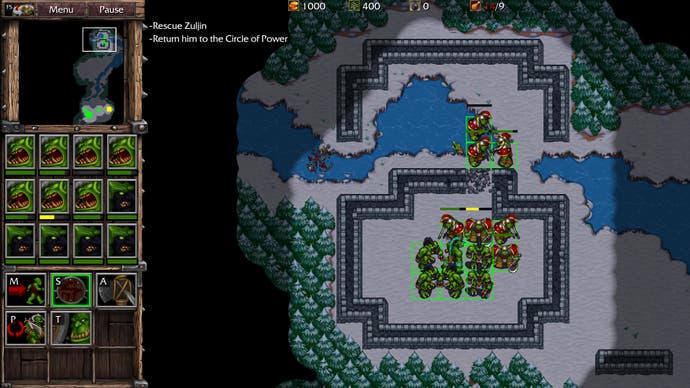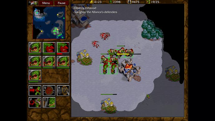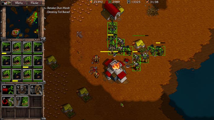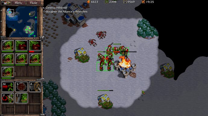 Speaking of interface tweaks, one thing I would have liked to have seen brought to the fore a bit more is Warcraft's game speed options. These are still tucked away in the settings menu unfortunately, and as much as I enjoyed watching my peasants/peons go about their business (and poking them indefinitely to provoke different reactions out of them with my mouse - always a delight), there were still plenty of occasions where I longed for aFrostpunk-style fast forward button to just wham through a big load of resource gathering for a spell. Even the default speed - which is already set toward the faster end of the scale in each Remaster - felt interminably slow at points, but it's too much of a hassle to keep tinkering with it when it involves so many unnecessary button presses.