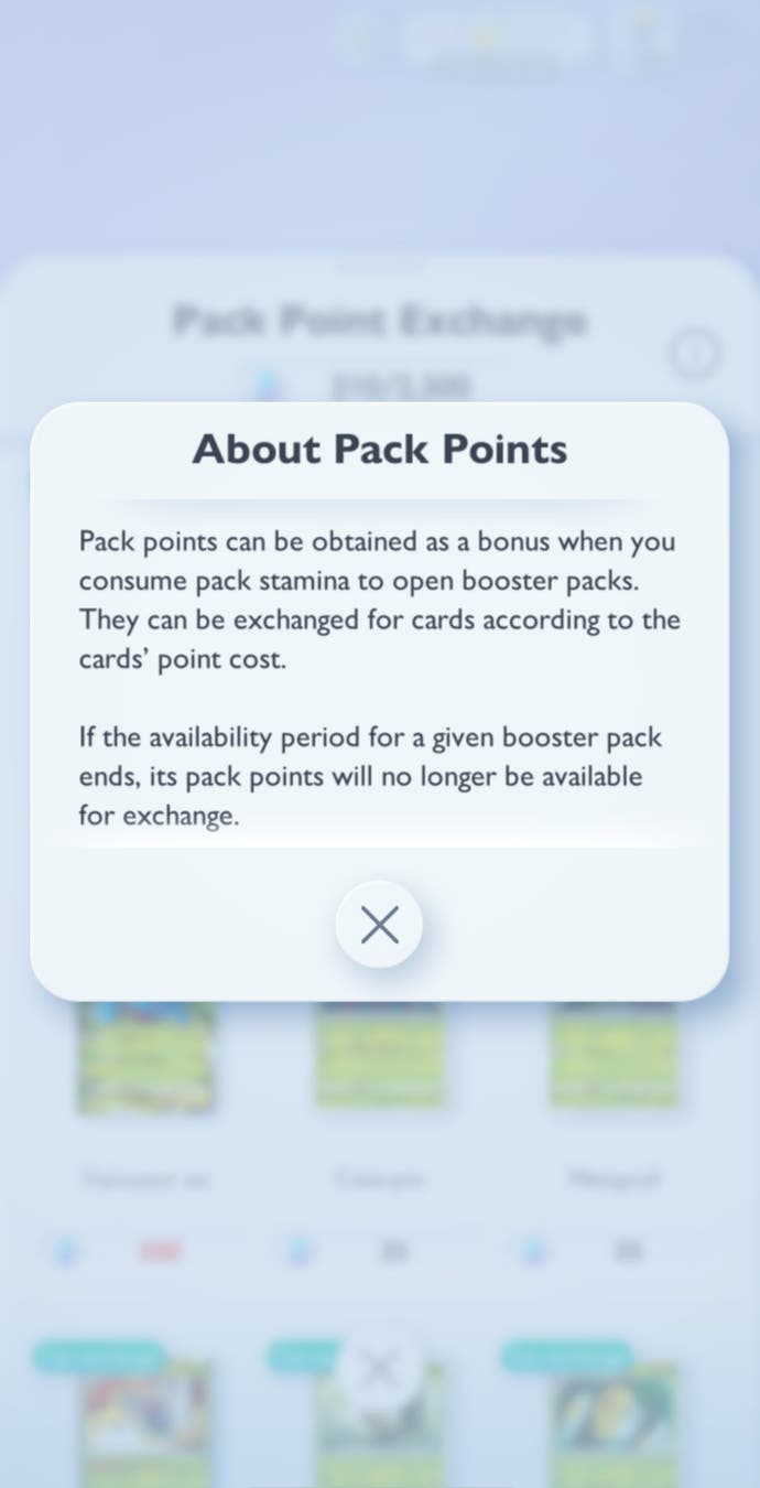 At least, I hadn't clocked that myself. Pack points are earned by opening booster packs in the mobile game and can then be spent on specific cards.