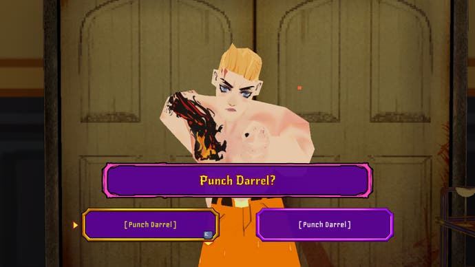 These decisions often take the form of simple requests, the binary outcomes of which will nudge these side plots in certain directions. Early on, for example, you can tell lug head Darrel whether to surprise his restaurateur boyfriend Oakley with a hamster-that's-definitely-not-a-rat 'now' or 'later'. The former will coincide with a health inspection taking place in Oakley's diner that morning, thereby driving them further apart due to Darrel's stupidity, while the latter will avoid that awkward encounter and potentially put them back on track to mending their already quite fractured relationship. Others will require you to perform time-sensitive actions - deliver a letter, say, or take an incriminating photo with the one-shot camera you're given especially for this one task before showing it to the correct person.