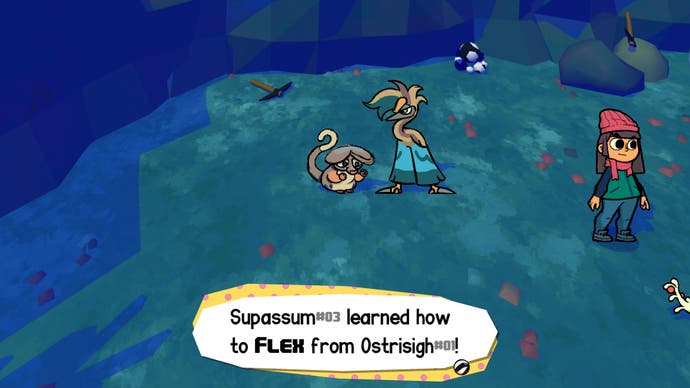 The script (and the game more generally) is very thoughtful in that way - which doesn't really come as a surprise at all after Lobanov's exceptionally sensitive work on Chicory. For example, I love how when Beasties are close to evolving, they suddenly get a bit awkward and sensitive, sweating profusely (draining their stamina in the process), and generally being a bit despondent. 'Their bodies are going through some big changes,' you're told, and to just hang in there and give them a little extra support while they work things out. Similarly, when two Beasties play together often, their friendship can eventually bloom into 'partners' and then 'besties', letting them perform special combo attacks when they're both in the field. They'll also gain new ideas for moves of their own watching their teammates, giving moves a really organic and inspiring sense of cross-pollination.